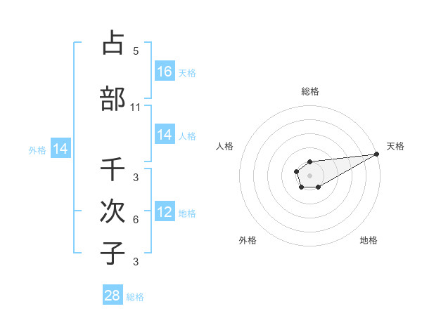 占部 千次子さんの天格は16画の5点!