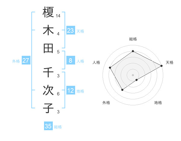 榎木田 千次子さんの天格は23画の5点!