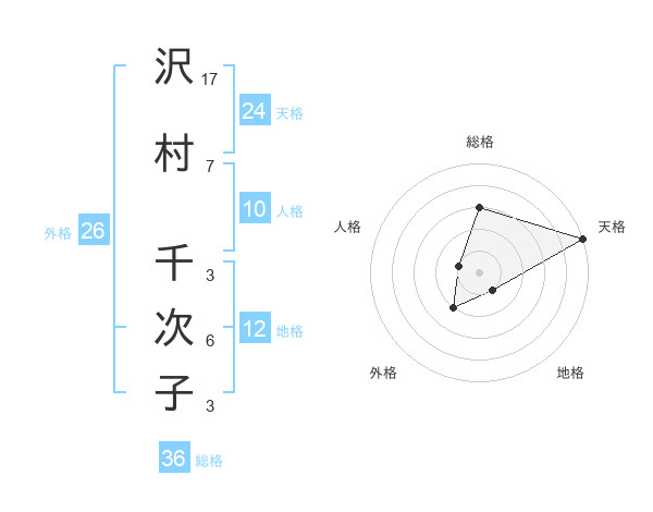沢村 千次子さんを姓名の画数から五運を鑑定