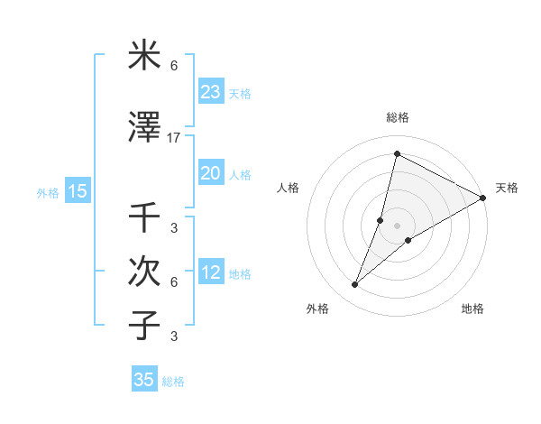 米澤 千次子さんを姓名の画数から五運を鑑定