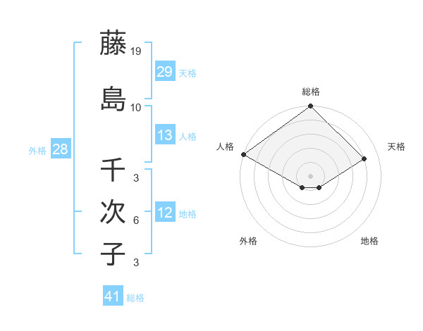 藤島 千次子さんを姓名の画数から五運を鑑定