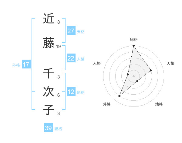 近藤 千次子さんを姓名の画数から五運を鑑定