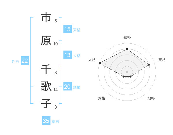 市原 千歌子さんの総格は35画の4点!