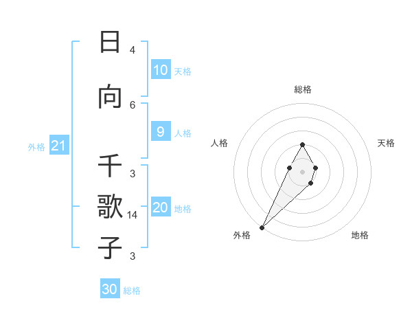 日向 千歌子さんを姓名の画数から五運を鑑定