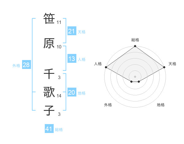 笹原 千歌子さんの総格は41画の5点
