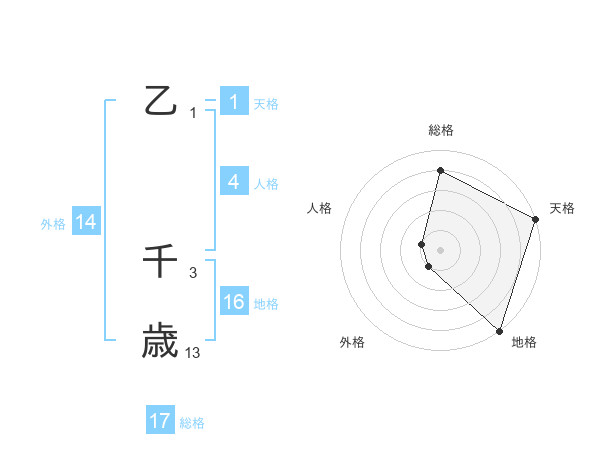 乙 千歳さんの総格は17画の4点!