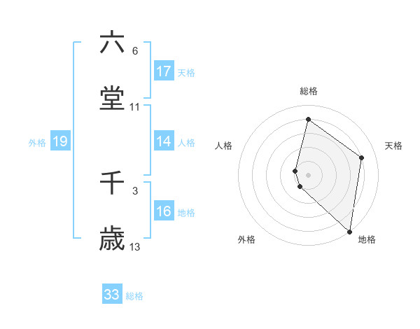六堂 千歳さんを姓名の画数から五運を鑑定