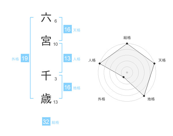 六宮 千歳さんの総格は32画の5点!