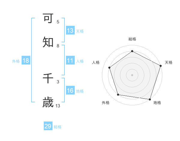 可知 千歳さんの総格は29画の4点!