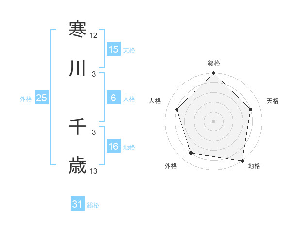 寒川 千歳さんを姓名の画数から五運を鑑定