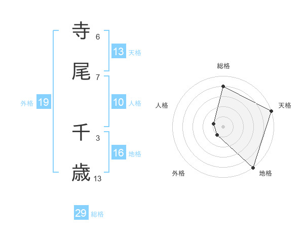 寺尾 千歳さんの総格は29画の4点!