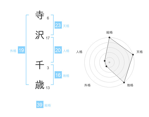 寺沢 千歳さんの総格は39画の5点!