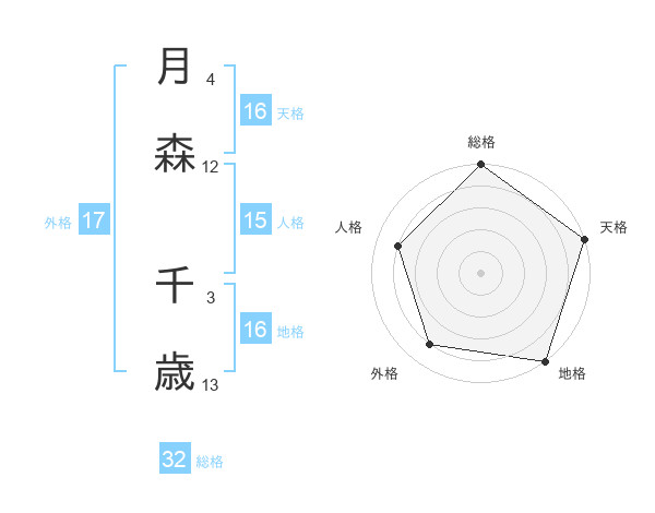月森 千歳さんの天格は16画の5点!