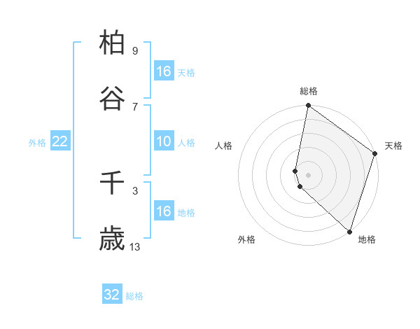 柏谷 千歳さんの天格は16画の5点!