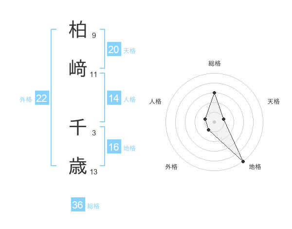 柏﨑 千歳さんを姓名の画数から五運を鑑定