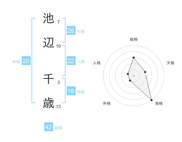 池辺 千歳さんの総格は42画の3点!