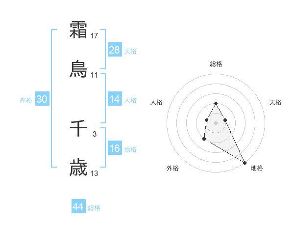 霜鳥 千歳さんを姓名の画数から五運を鑑定