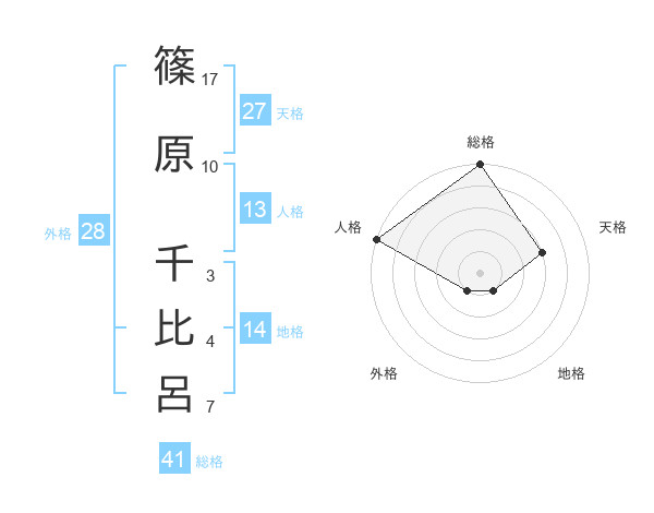 篠原 千比呂さんを姓名の画数から五運を鑑定