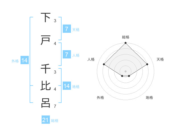 下戸 千比呂さんを姓名の画数から五運を鑑定