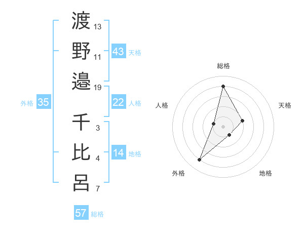 渡野邉 千比呂さんを姓名の画数から五運を鑑定