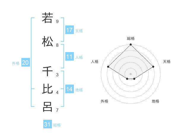 若松 千比呂さんを姓名の画数から五運を鑑定