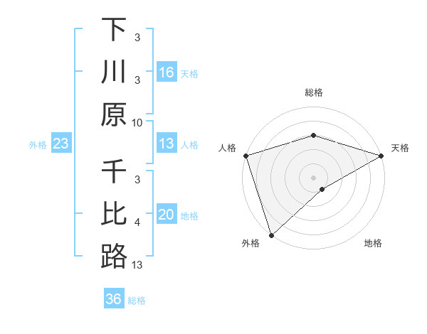 下川原 千比路さんの外格は23画の5点!