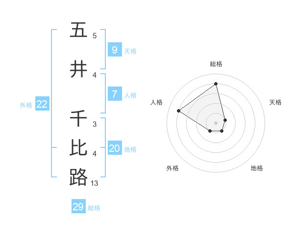 五井 千比路さんの総格は29画の4点!