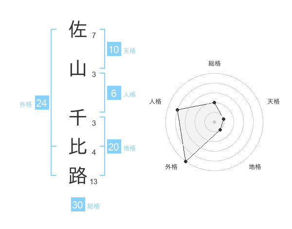 佐山 千比路さんの外格は24画の5点!