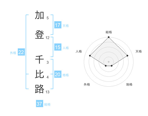加登 千比路さんを姓名の画数から五運を鑑定