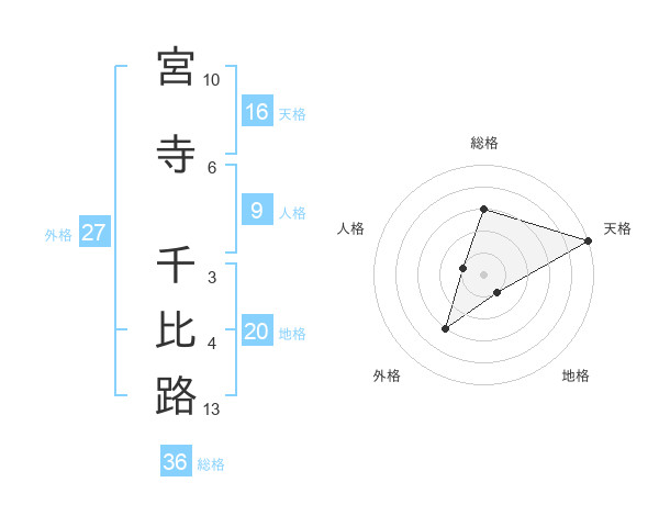 宮寺 千比路さんの天格は16画の5点!