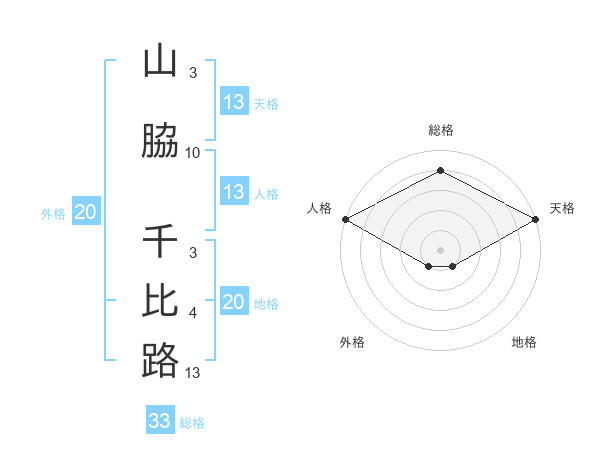 山脇 千比路さんを姓名の画数から五運を鑑定