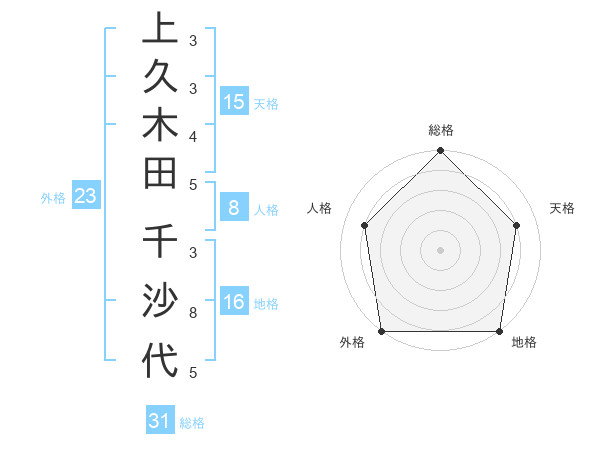 上久木田 千沙代さんを姓名の画数から五運を鑑定
