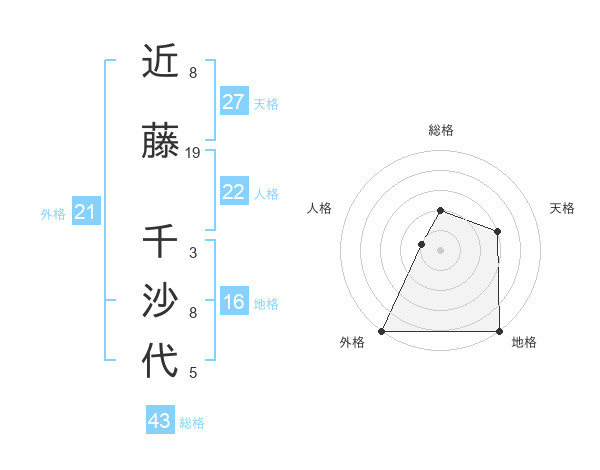 近藤 千沙代さんを姓名の画数から五運を鑑定