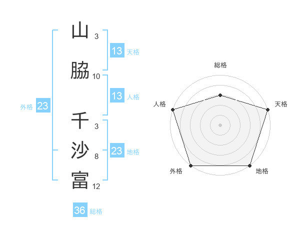 山脇 千沙富さんを姓名の画数から五運を鑑定