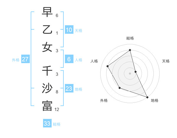 早乙女 千沙富さんを姓名の画数から五運を鑑定
