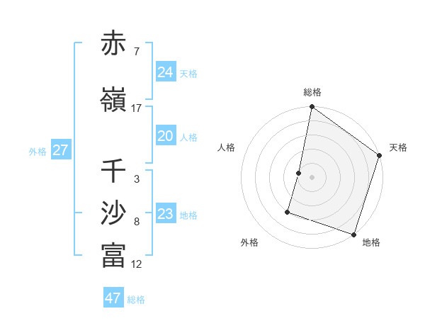 赤嶺 千沙富さんの天格は24画の5点!