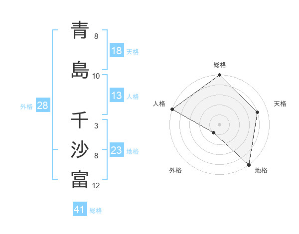 青島 千沙富さんの総格は41画の5点!