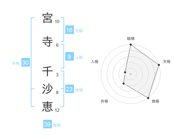 宮寺 千沙恵さんを姓名の画数から五運を鑑定