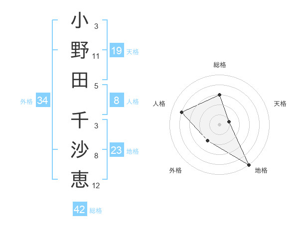 小野田 千沙恵さんの総格は42画の3点!