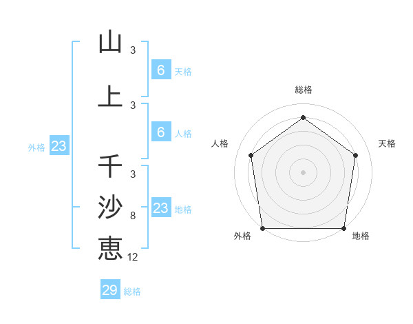 山上 千沙恵さんを姓名の画数から五運を鑑定