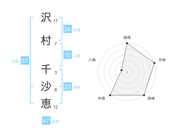 沢村 千沙恵さんを姓名の画数から五運を鑑定