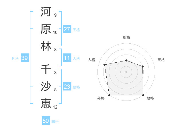 河原林 千沙恵さんを姓名の画数から五運を鑑定