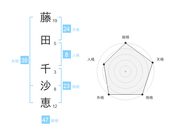 藤田 千沙恵さんを姓名の画数から五運を鑑定