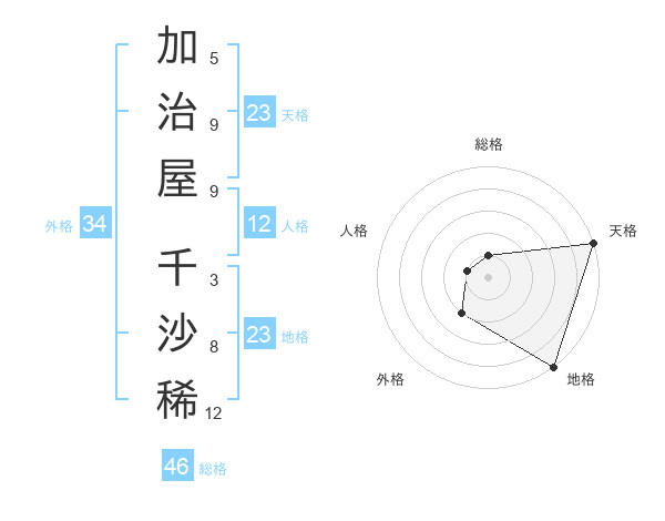 加治屋 千沙稀さんを姓名の画数から五運を鑑定