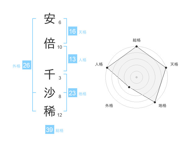 安倍 千沙稀さんを姓名の画数から五運を鑑定