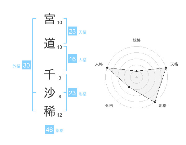 宮道 千沙稀さんを姓名の画数から五運を鑑定