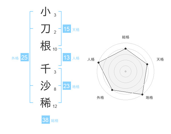 小刀根 千沙稀さんを姓名の画数から五運を鑑定