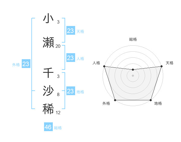 小瀬 千沙稀さんを姓名の画数から五運を鑑定
