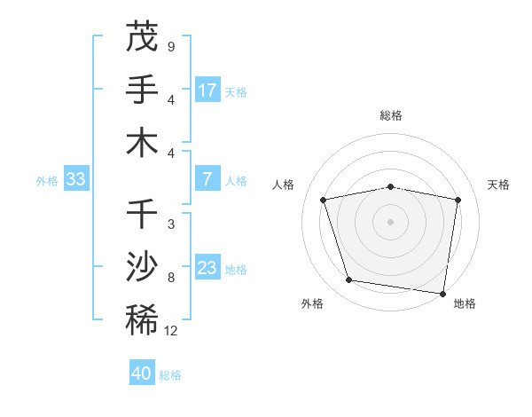 茂手木 千沙稀さんの天格は17画の4点!