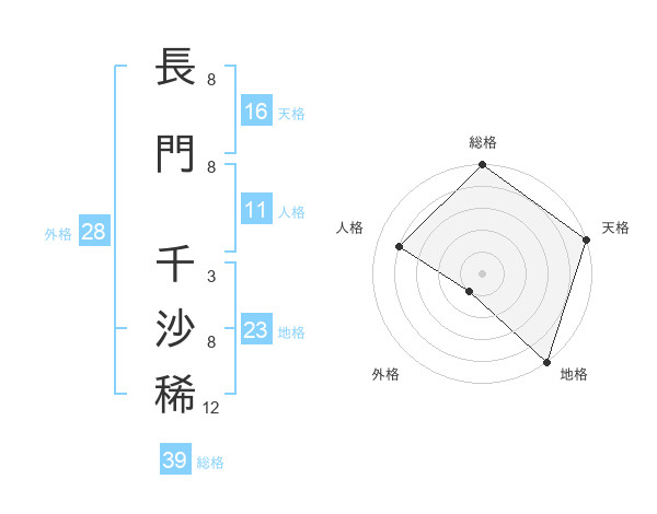 長門 千沙稀さんを姓名の画数から五運を鑑定